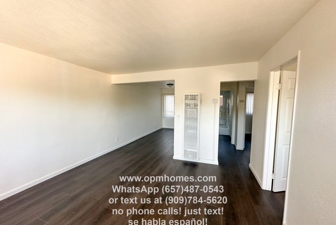 Apartamento de 2 recámaras y 1 baño en Pomona disponible para mudanza inmediata. Esta unidad ha sido renovada con mejoras que incluyen encimeras de granito en la cocina, azulejos nuevos en el baño, pisos de madera dura y pintura nueva. Vea nuestras fotos y videos para más detalles. Se trata de una unidad en el piso superior (arriba).