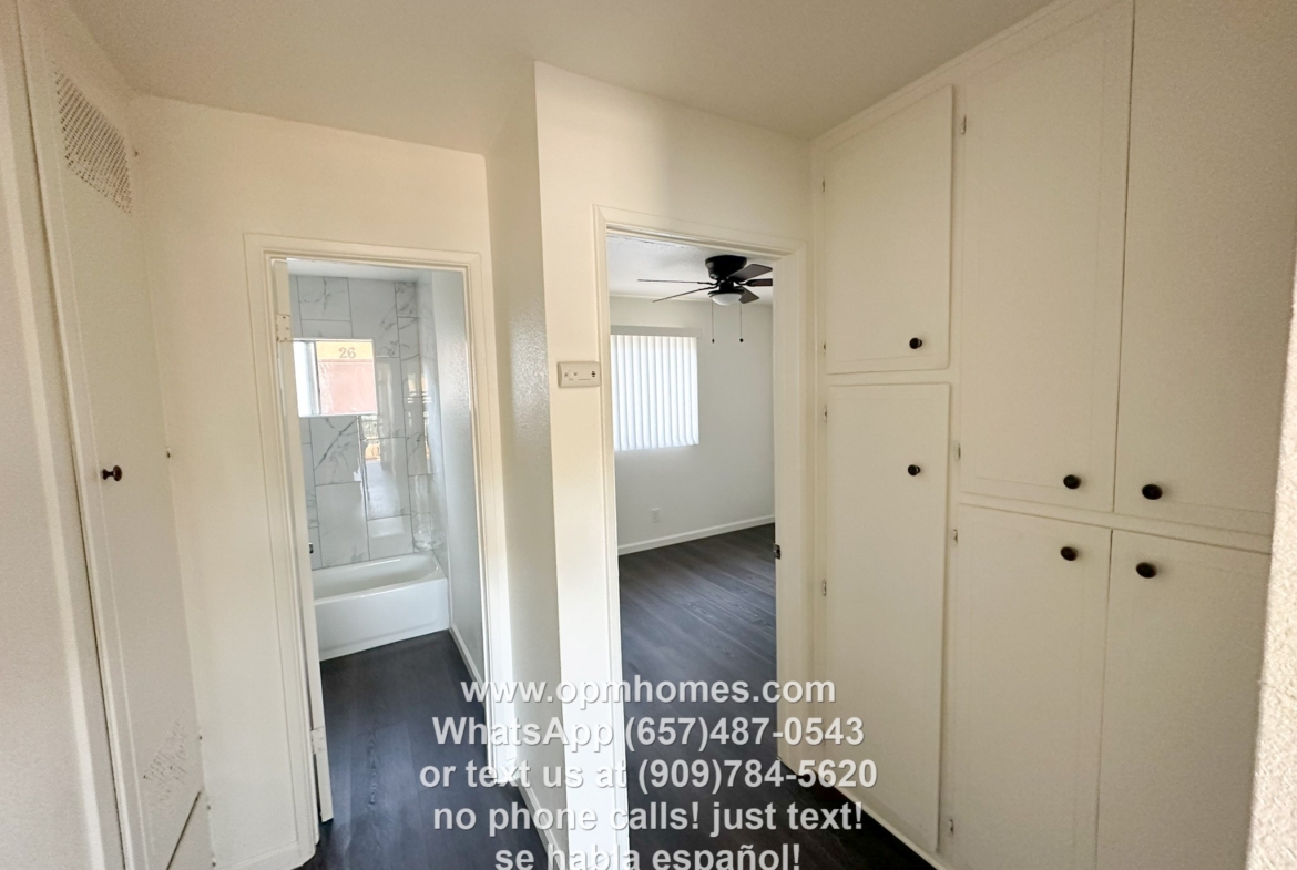 2 Bedroom 1 Bath apartment in Pomona available for immediate move-in. This unit has been renovated with upgrades, including granite countertops in the kitchen, new tile in the bathroom, hardwood floors, and new paint. See our pictures and videos for more details. This is an upstairs unit. We have a move-in special where the average first year’s rent is $1,658.13 Se Habla Español